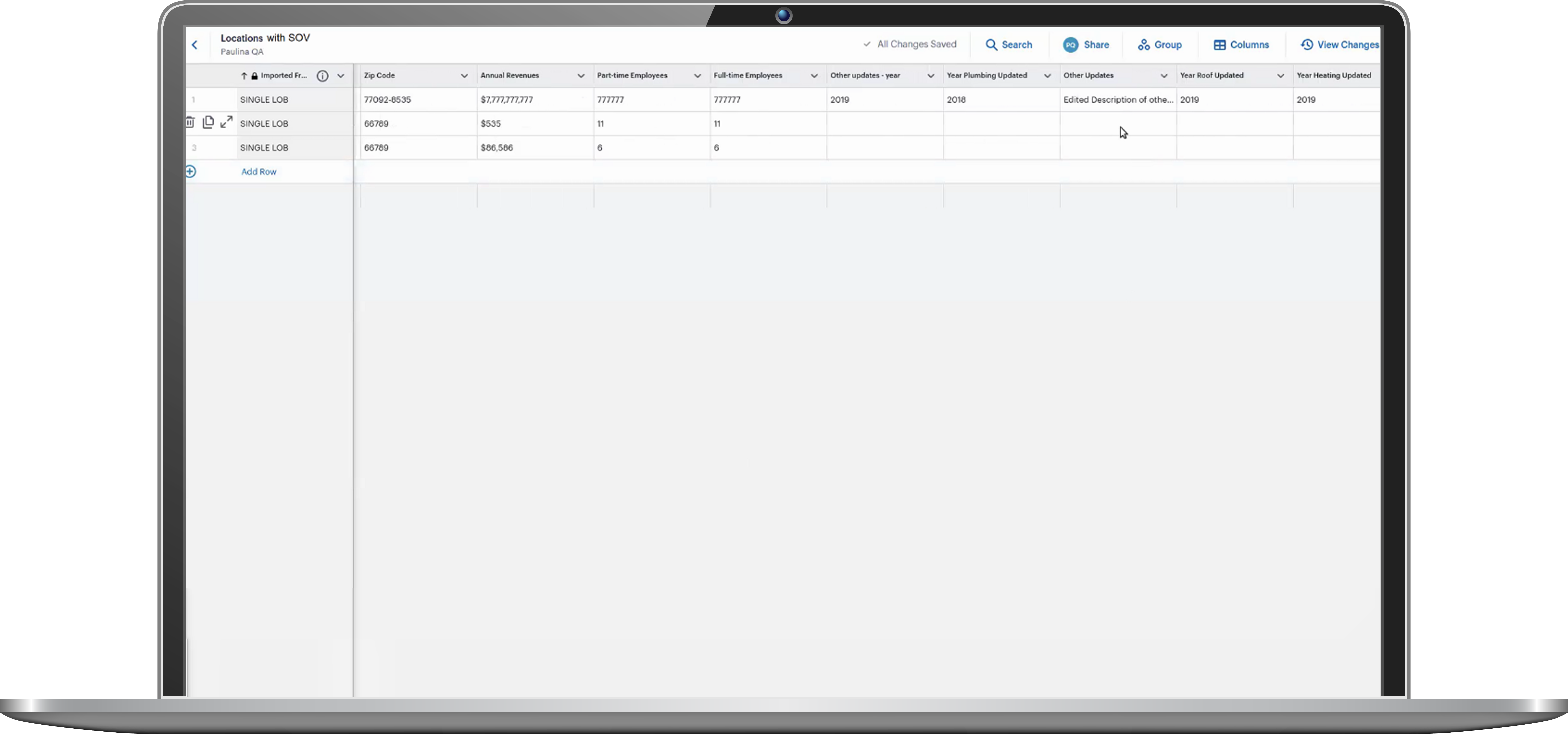 Location with SOV Schedule